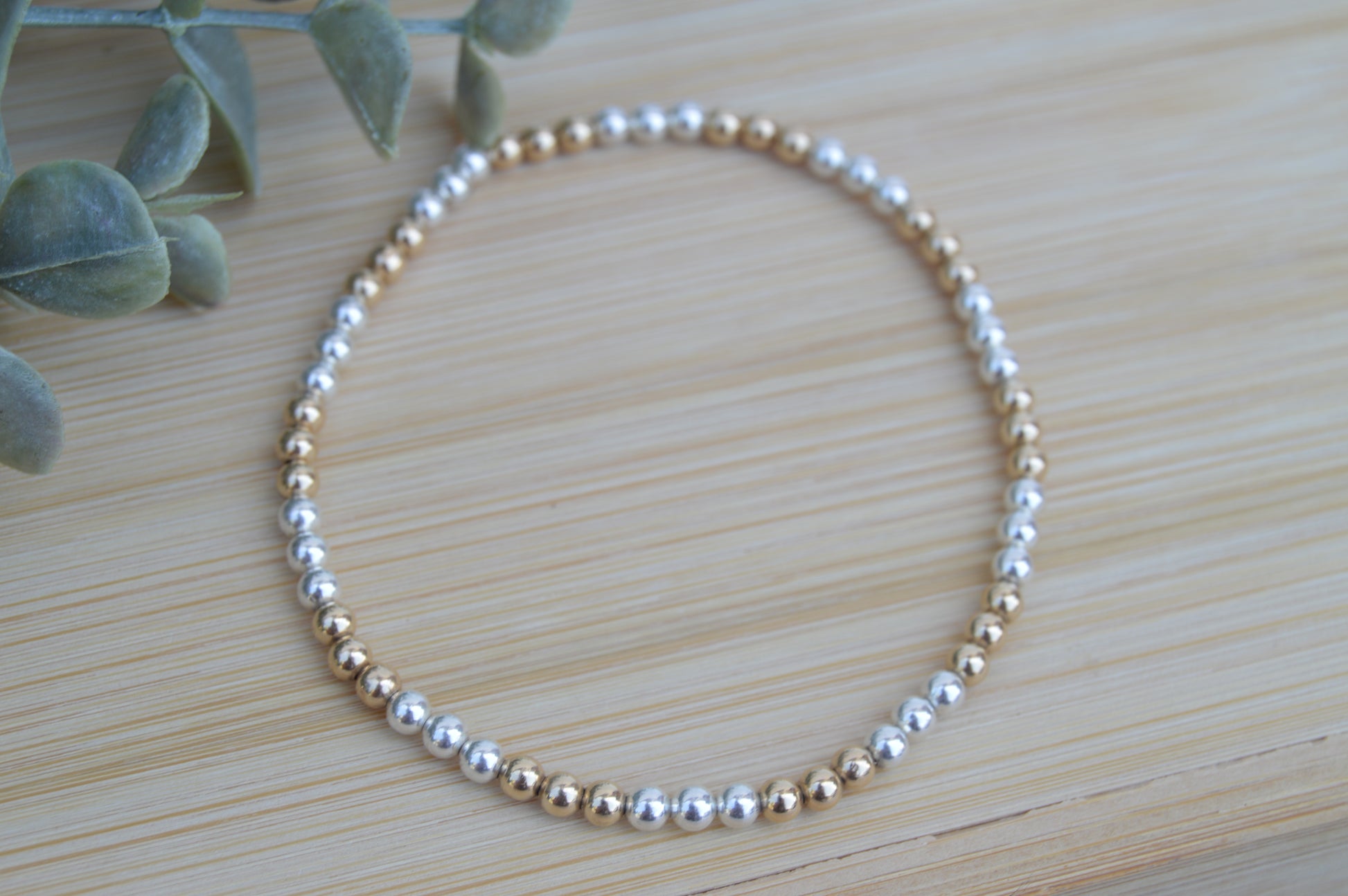 Sterling Silver and 14k Gold-Filled Mixed Metal Beaded Bracelet – 3mm Beads