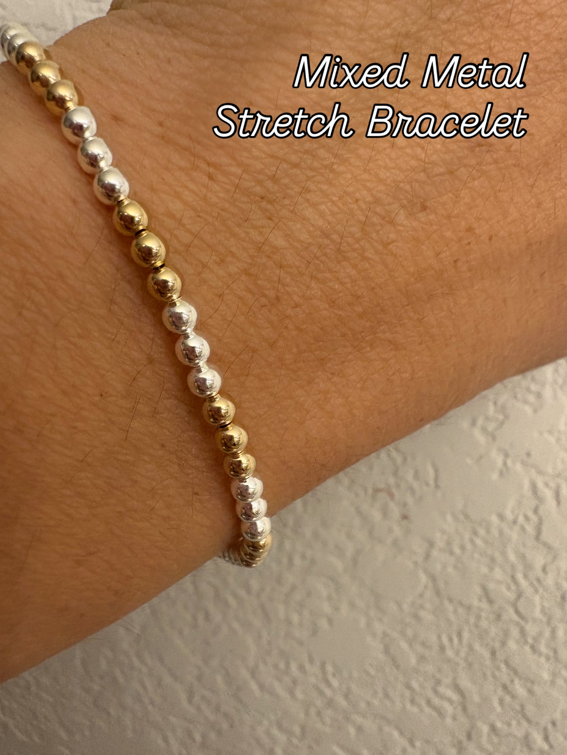 Mixed Metal Beaded Stretch Bracelet - 3mm Beads